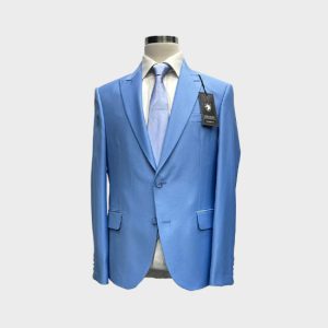 A fresh, sophisticated 2-piece suit in Sky Blue, designed with breathable fabric and a slim fit, perfect for modern summer elegance.