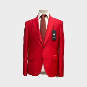 A bold, sophisticated 2-piece suit in Bright Red, designed with a tailored fit, breathable fabric, and standout style for special occasions.