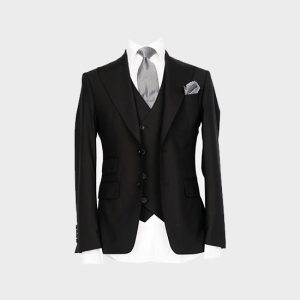 A timeless 3-piece suit in Classic Black, featuring a tailored fit, premium fabric, and versatile design for formal occasions.